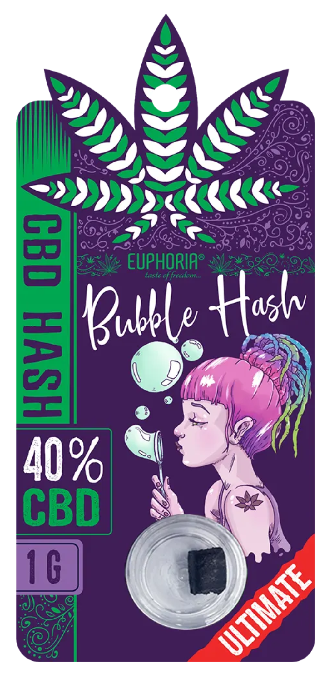 The Euphoria CBD Hash 40% Bubble is the strongest and most aromatic product in the Euphoria hash collection — offering a bold, resinous, “Bubble hash” style profile loved by experienced users seeking depth and authenticity.